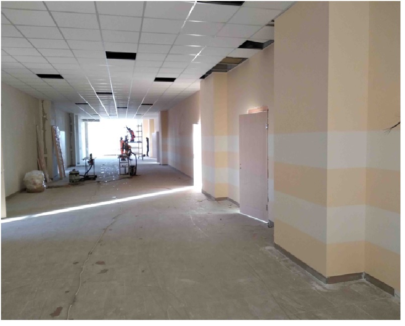 На данный момент ведутся работы по благоустройству территории, кровельные работы, фасадные работы, штукатурные, отделочные и облицовочные работы, монтаж внутренних дверей, настилка полов из линолеума. Ввод объекта в эксплуатацию планируется в декабре 2019 г.